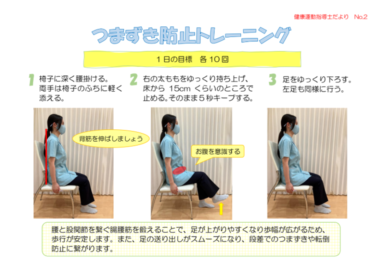 健康運動指導士だよりNo.2「つまずき防止トレーニング」を掲載しました