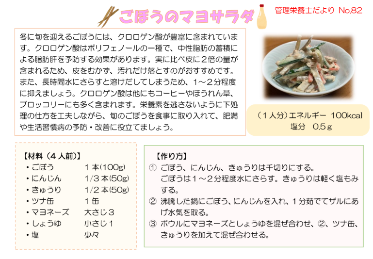 管理栄養士だよりNo.82「ごぼうのマヨサラダ」を掲載しました
