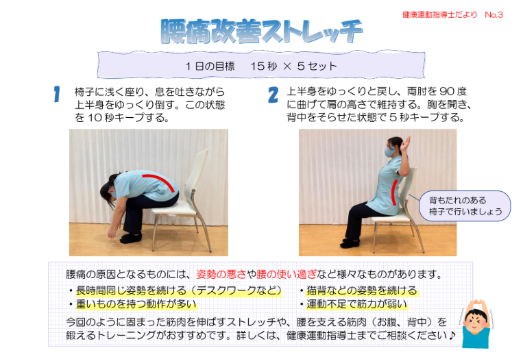 健康運動指導士だよりNo.3「腰痛改善ストレッチ」を掲載しました