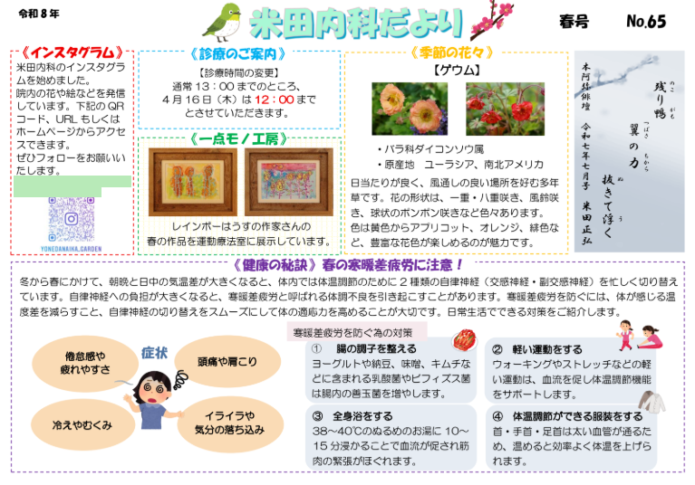 「米田内科だより 令和8年春号」を掲載しました。